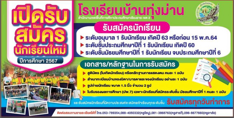 เปิดรับสัครนักเรียน ปีการศึกษา 2567