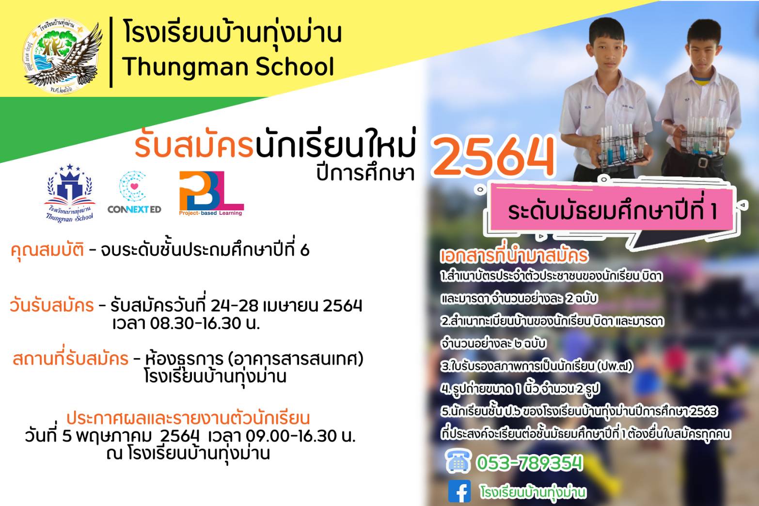 รับสมัครวันที่ 24 - 28 เมษายน 2564 เวลา 08.30 - 16.30 น.